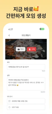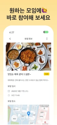 혼자 먹는 밥이 익숙해진 현대 사회, 유쾌한 식사 동반자가 필요한 순간이 있지 않나요? 밥친구는 바로 당신의 주변에서 새로운 만남을 통해 맛있는 식사를 함께할 사람들을 이어주는 특별한 공간입니다. 복잡한 절차 없이 간편한 가입만으로, 오늘 당장 당신의 식탁을 채워줄 모임을 직접 만들거나 참여할 수 있습니다. 밥친구와 함께라면 매일의 식사가 단순한 한 끼를 넘어 즐거운 소통의 시간이 될 것입니다.