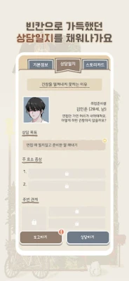 이 특별한 여정 속에서 당신은 단순한 이야기를 넘어선 깊이를 발견하게 됩니다. 상담 일지를 채워가는 과정은 내담자를 더 깊이 이해하는 열쇠가 됩니다. 미션 달성 뱃지, 다채로운 감정 카드, 그리고 스토리를 담은 기록 카드들을 수집하며 공백으로 가득했던 페이지를 완성해 보세요. 상담실 안팎에서 마주하는 소장님, 제이, 율무 같은 주변 인물들과도 긍정적인 관계를 쌓아나갈 수 있습니다. 이들과의 교류를 통해 상담소에 얽힌 흥미로운 뒷이야기, 각 인물들이 이곳에 오게 된 배경과 숨겨진 과거를 알아가는 재미를 느껴보세요.