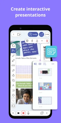이 강력한 도구를 사용하여 공동으로 메모를 작성하고 그림을 그리며, PDF 문서에 직접 주석을 달거나 다양한 자료를 손쉽게 불러올 수 있습니다. 수업 내용을 녹화하여 학생들에게 시각적인 설명을 제공하고, 개념이 전개되는 모든 과정을 생생하게 전달하세요. 실시간 협업 기능을 통해 어디에 있든 팀원이나 학생들과 동시에 작업하며 아이디어를 교환하고, 모두가 같은 방향을 향해 나아갈 수 있도록 지원합니다.