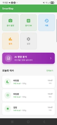 스마트밥은 AI 기반 영양 분석으로 건강한 식단 관리를 돕습니다. 음식 사진 한 장으로 칼로리, 탄수화물 등 영양소를 즉시 확인하고, 맞춤형 목표 설정과 통계로 균형 잡힌 식습관을 유지하세요. 바쁜 일상 속에서도 스마트밥과 함께 간편하게 건강을 챙겨보세요.